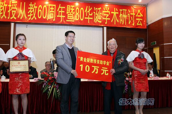 黄金陵教授一直关心福州大学和化学化工学院的发展,为激励年轻学子刻苦学习,研讨会上,特拿出自己平时节俭的10万元积蓄设立“黄金陵教授奖助学金”,主要用于资助化学化工学院品学兼优但家庭经济困难的本科生和研究生。多年来,黄金陵教授一直难忘恩师对自己的教导,将恩师卢嘉锡先生当年为自己修改的论文稿长期保留作为认真学习的材料。这次会上,为了表达对恩师的感念之情,将一篇原稿赠送给卢嘉锡科学教育基金会。