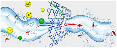 水资源短缺已经成为了本世纪人类需要共同面对的挑战。为了解决这一问题,科学家一直致力于寻找更加有效的材料以提升盐水淡化的效率并降低其成本。g-C3N4是一种新型的二维材料,近期的研究证明该材料有可能被应用于分子分离。李金宇课题组借助于分子动力学模拟,首次对g-C3N4材料除盐功能进行可行性探究。研究表明,纳米多孔g-C3N4材料可以在快速输运水分子的同时,完全阻止盐溶液中钙离子和氯离子输运,并且可以降低除盐后溶液中钠离子和钾离子的浓度。此外,该研究还揭示了水和离子在g-C3N4材料纳米尺度通道中的输运机理,为未来设计新型除盐功能材料提供理论指导。