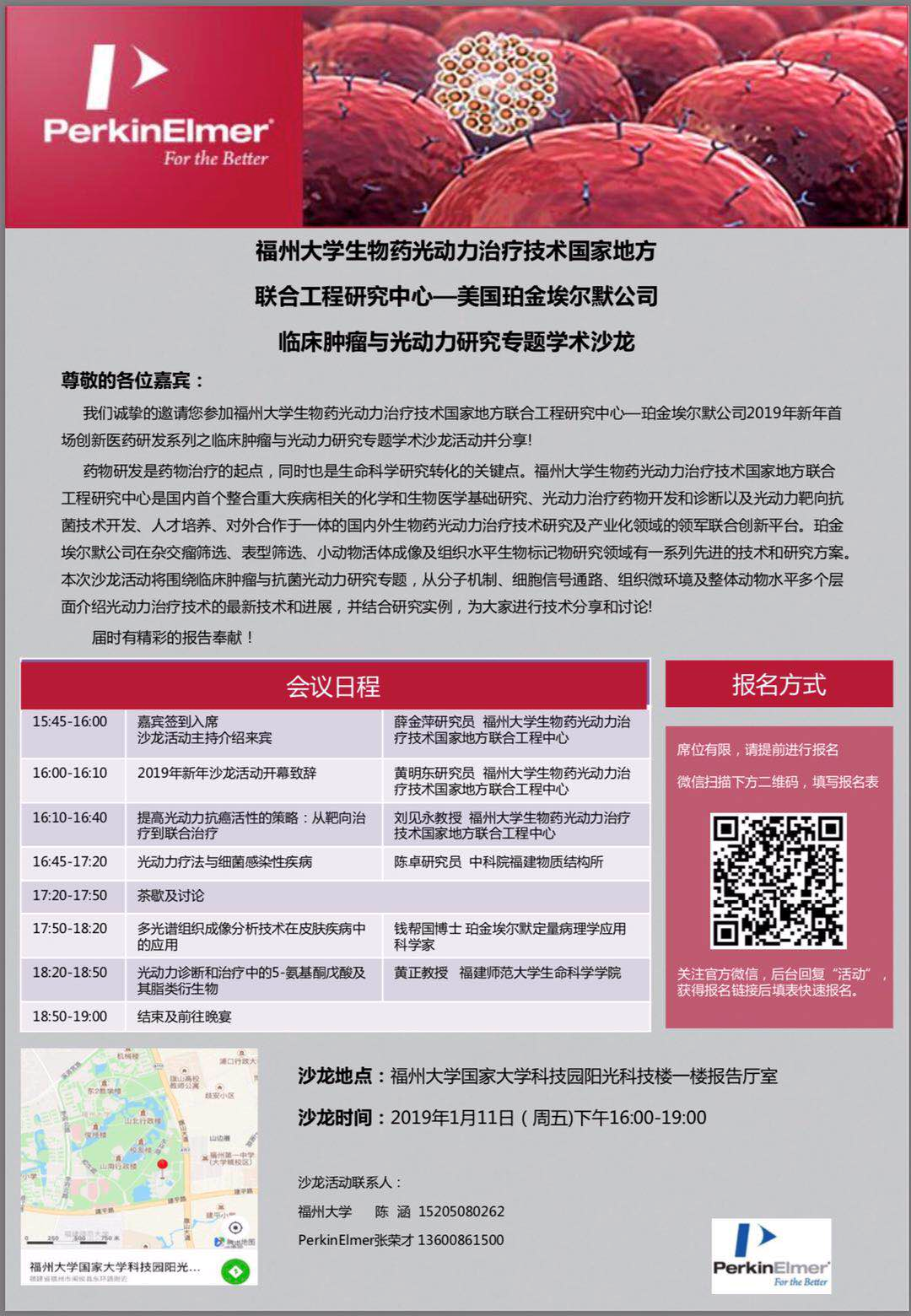 主题:临床肿瘤和抗菌光动力研究 时间:2019年1月11日(星期五)下午4-7点(16:00-19:00) 地点:福州大学国家大学科技园阳光科技楼二楼报告厅