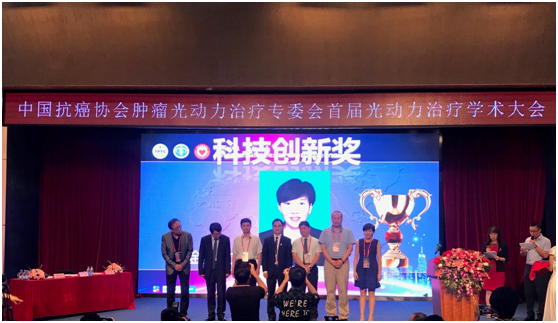 2019年10月12日,中国抗癌协会肿瘤光动力治疗专委会首届光动力治疗学术会议在美丽的南国鹏城-深圳隆重召开,来自全国各大医院和院校肿瘤光动力治疗相关学科的专家学者出席了这次盛会。当日,我中心薛金萍教授被授予中国抗癌协会肿瘤光动力治疗专委会科技创新奖,以表彰其多年来在光敏剂的发展领域对光动力治疗的积极实践和创新进取;中国抗癌协会肿瘤光动力治疗专委会主任委员王洪武教授为其颁奖。同时,薛金萍教授在大会上的精彩报告《新型光敏剂的研发前景》获得了与会学者的广泛关注和高度评价。