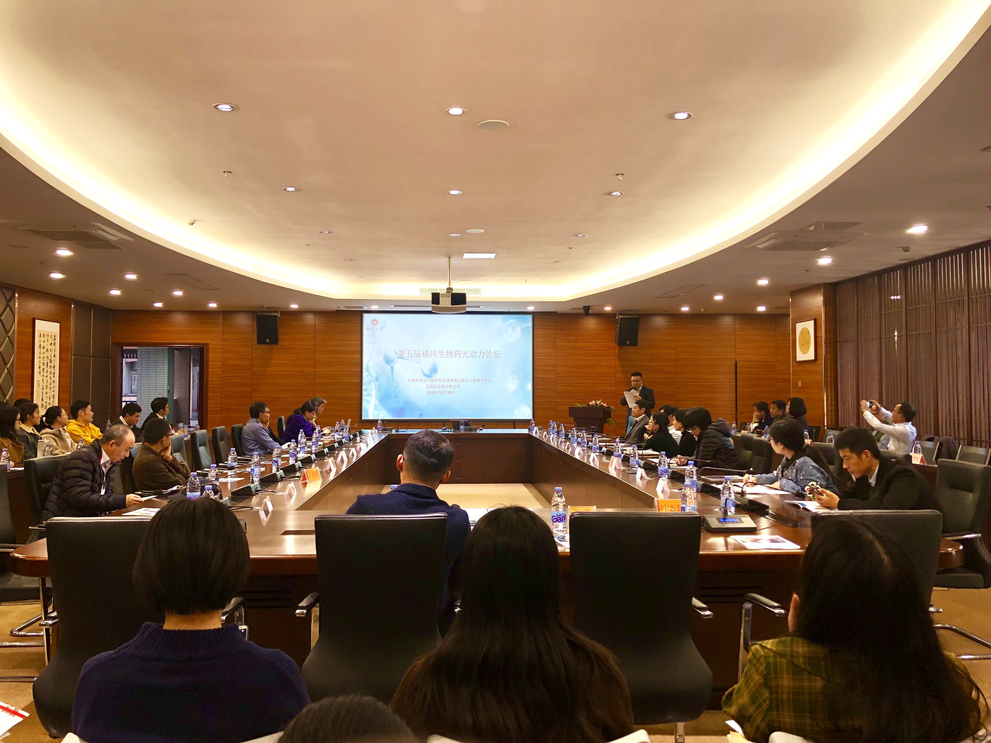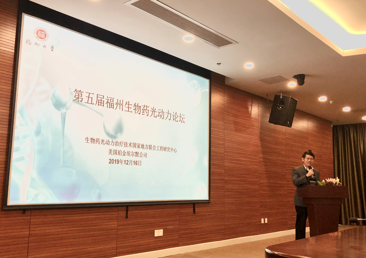 2019年12月16日,福州大学生物药光动力治疗技术国家地方联合工程研究中心与美国珀金埃尔默公司共同联合举办的第五届福州生物药光动力论坛,在福州大学国家大学科技园顺利召开。