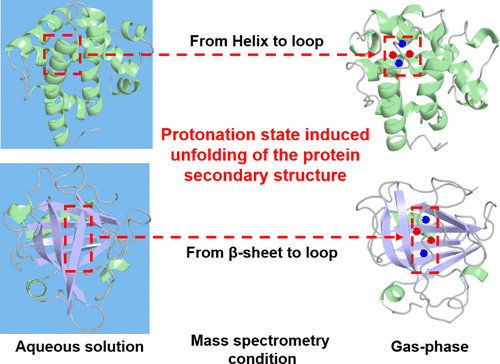 李金宇教授团队利用自主开发的高精度质谱环境蛋白结构预测技术,在原子尺度观察到液气相质子化状态变化所诱导的二级结构解折叠现象,并成功揭示其调控分子机制,该工作增强了人们对蛋白解折叠与环境因素调控蛋白功能的理解(J. Phys. Chem. Lett. 2024, 9374)。中心21级硕士生杨贵倩为该工作第一作者,23级博士生张勇奇、博士后柳林(现福建农林大学生命科学学院讲师)和李金宇教授为共同通讯作者。